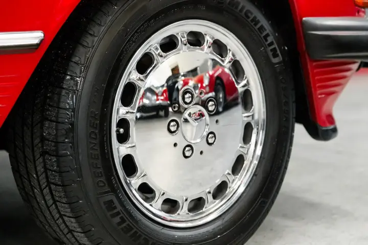 ONE would be hard pressed to find a cleaner, more crisp, sharp 107 SL than this example ! The car comes with its original window sticker, books ,manuals ,service tickets ,and tools. The car comes with both Hard top and soft top(soft top is as new).The soft top compartment still looks new. The paint is as perfect as I have witnessed in recent years. The tires are deep in tread, all bright work is crisp and clean without flaw. The gray leather seats still look new ,