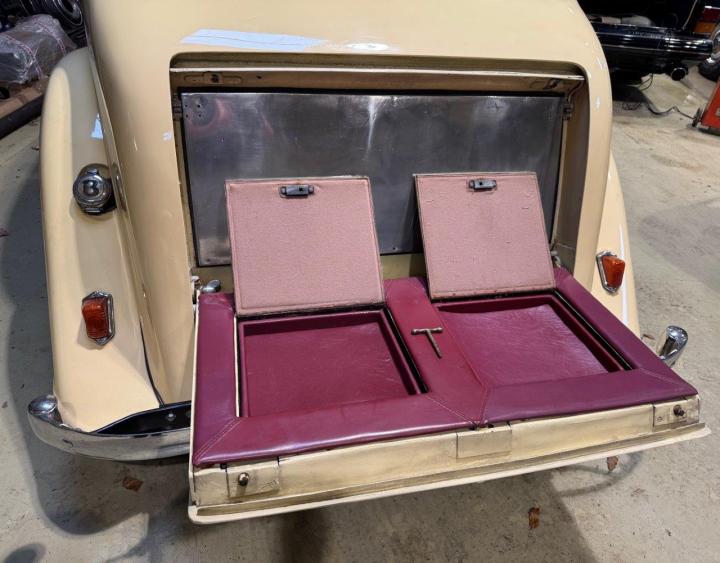 A very well-specified example, with a plethora of extra instrumentations & switches on the dashboard, twin fuel fillers, twin side-mounted spare wheels and various other deviations from ‘standard’. Originally built for Geoffrey Smith, managing editor of ‘The Autocar’ magazine & specified with many extras, well documented in various publications, including mentions in four different editions of ‘On the Road’, the contemporary magazine produced by Bentley in the thirties. The history file with the car has copies of some of these, together with other documentation, handbook, etc. The car is in good all-round condition, with a very impressive frontal appearance, with its selection of lamps & horns. Driving well, sounding good, and looking very handsome in two shades of cream, with red double pinstripe & red leather interior. Offered MoT tested.